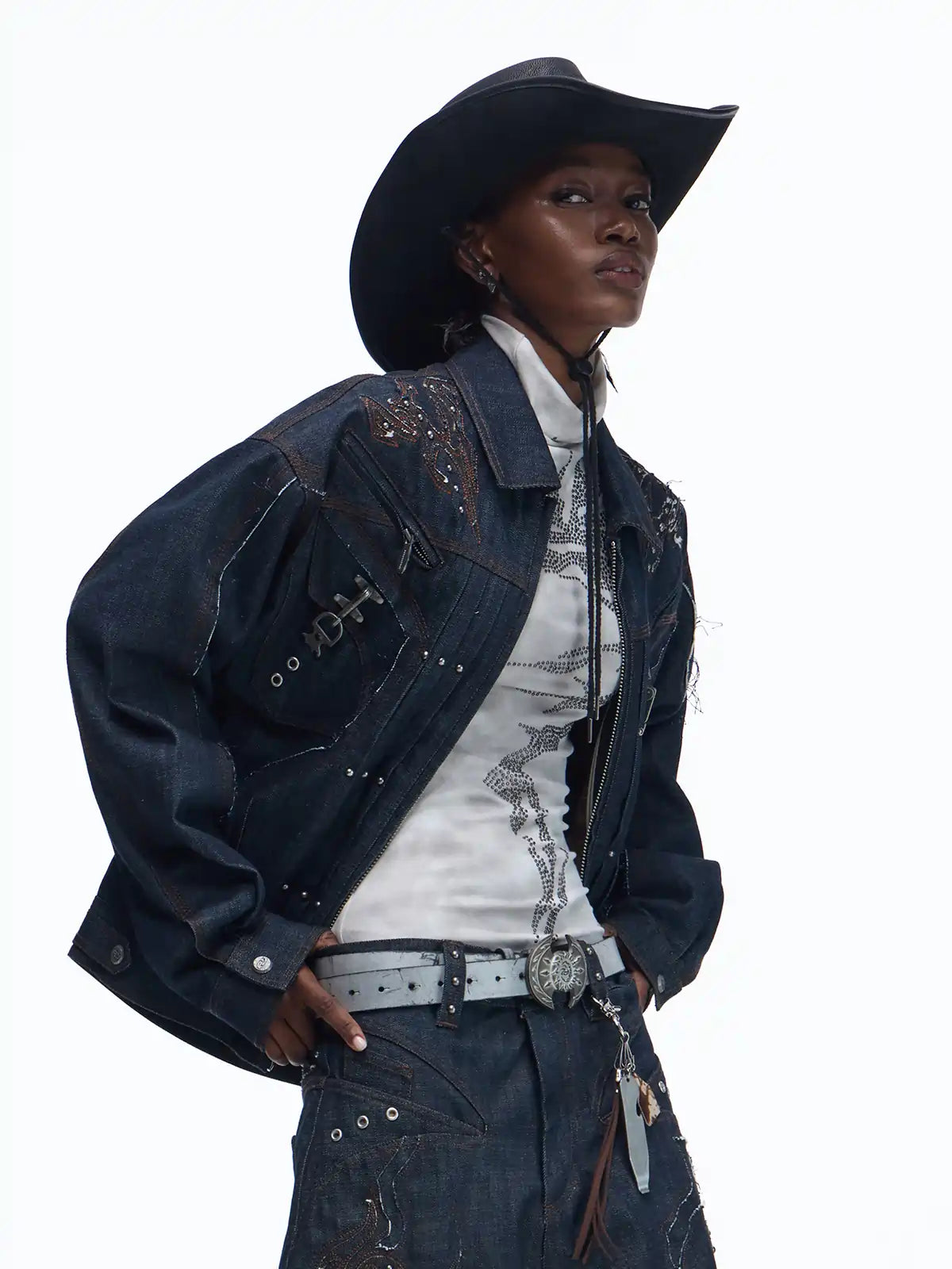 Raw Denim Patch Embroidered JacketPersonsoul Raw Denim Patch Embroidered Jacket