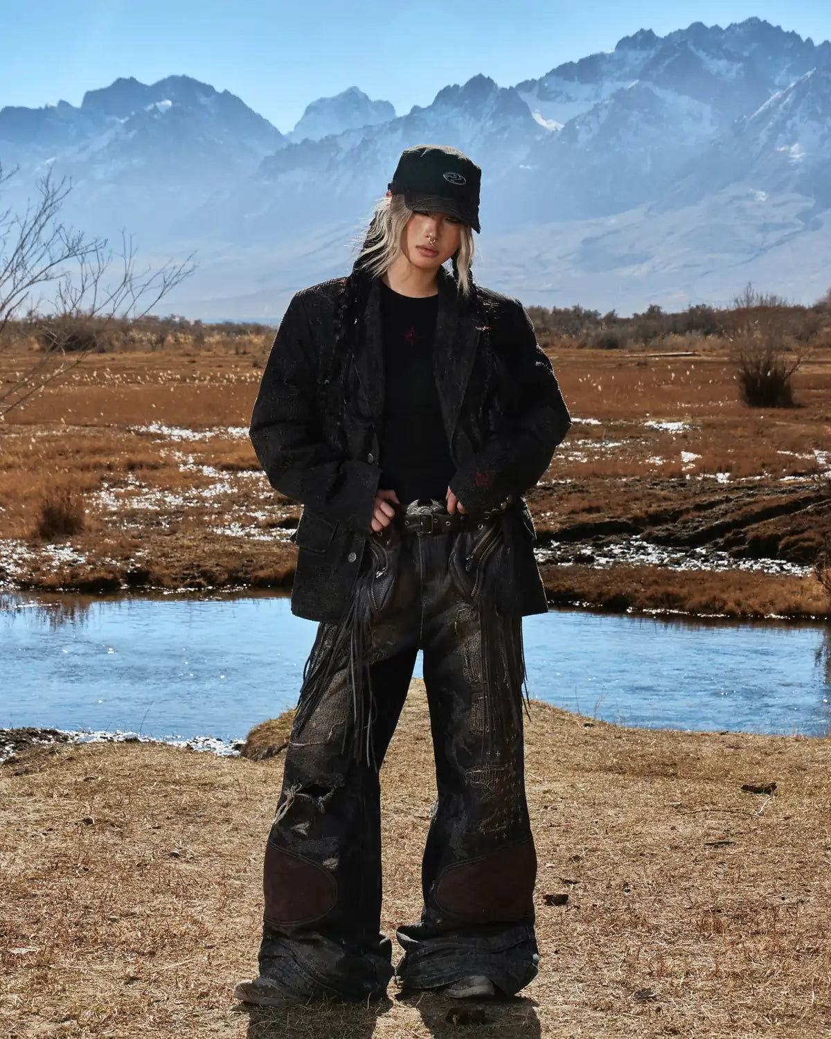 Personsoul Black Laser-Distressed Denim Blazer