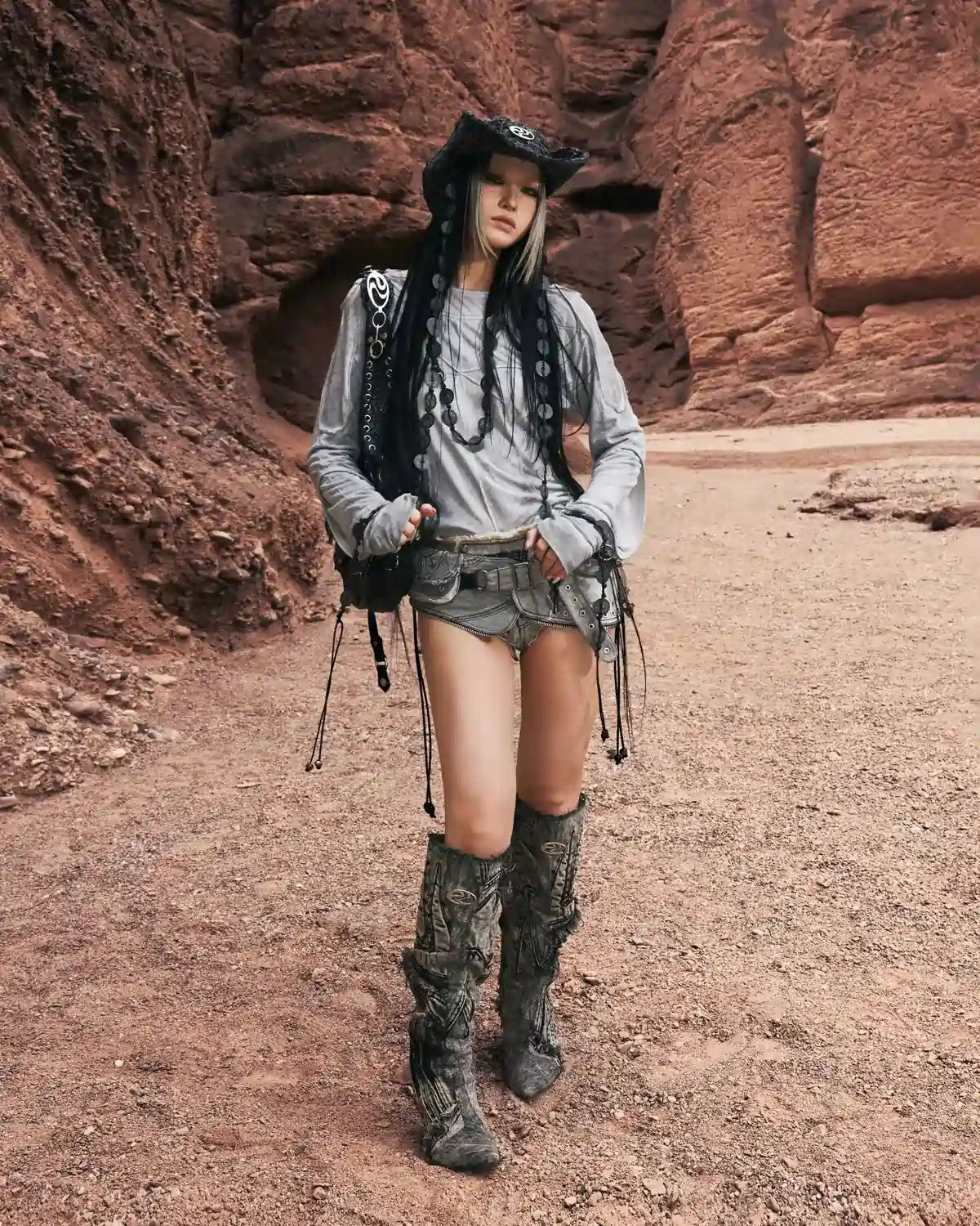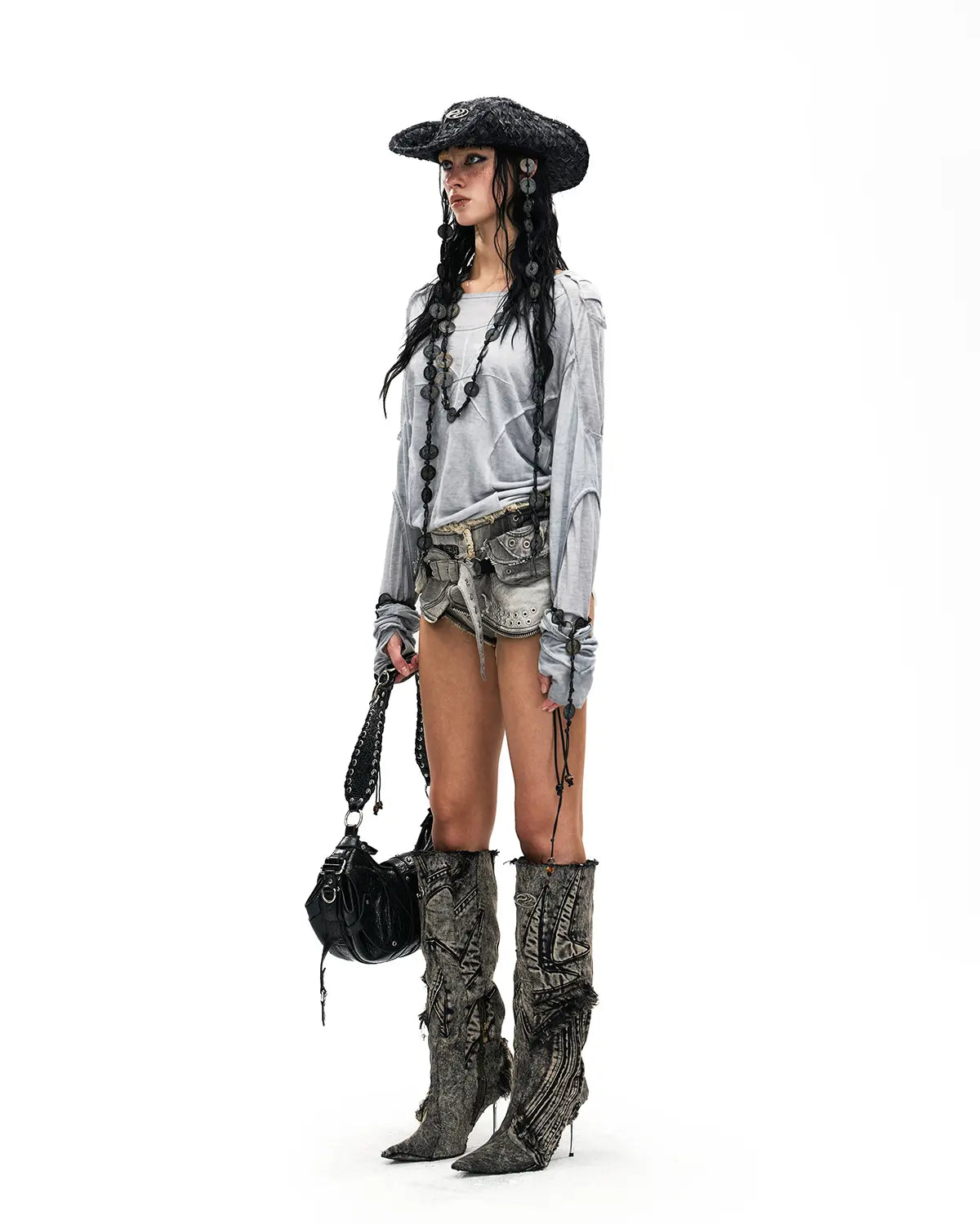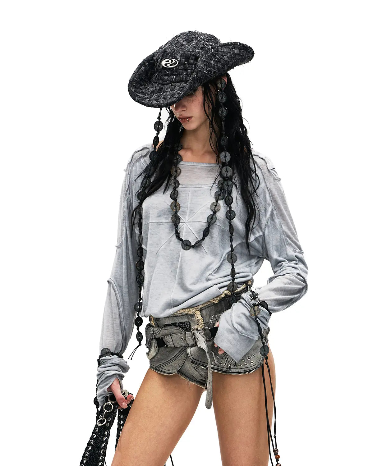 Personsoul Deconstructed Faux-Layer Long-Sleeve T-Shirt Gray