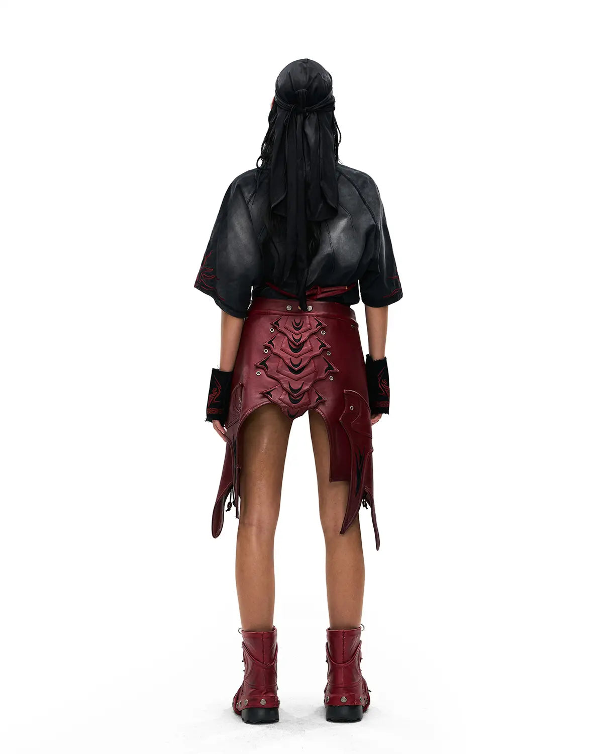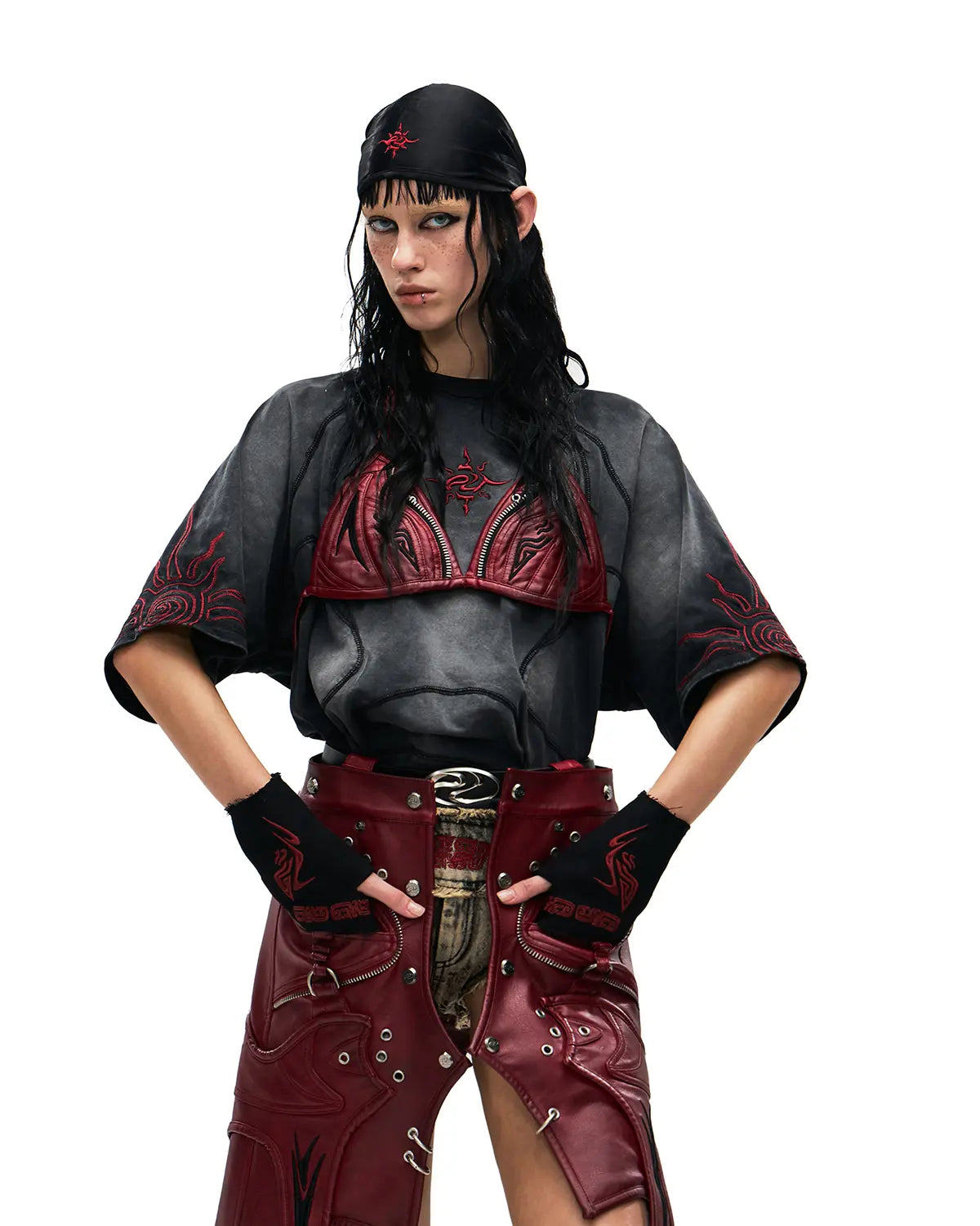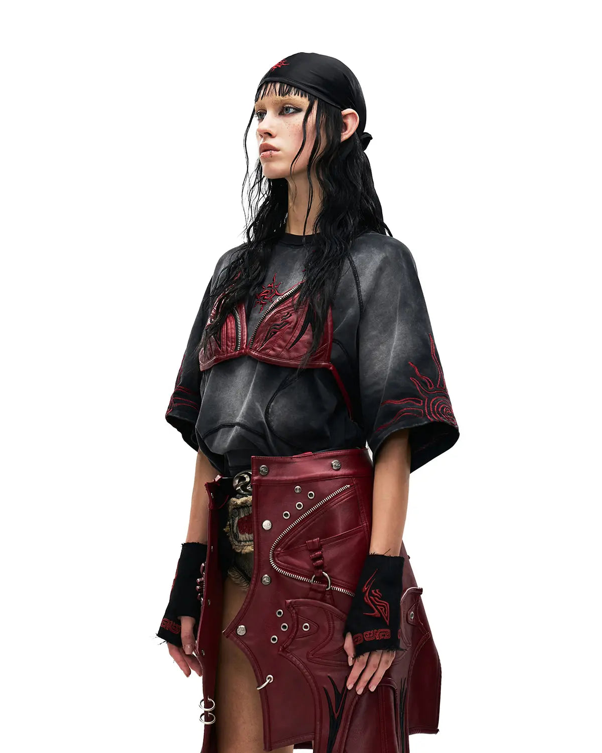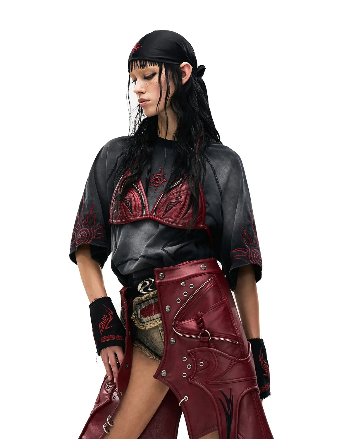Personsoul Embroidered Mythical Beast Motif Bikini Top In Red