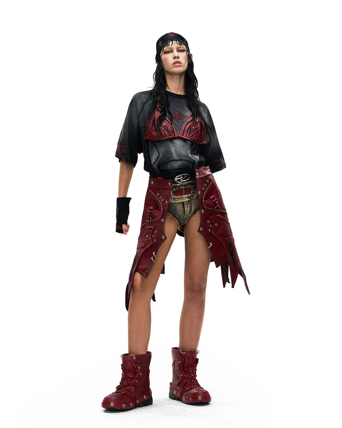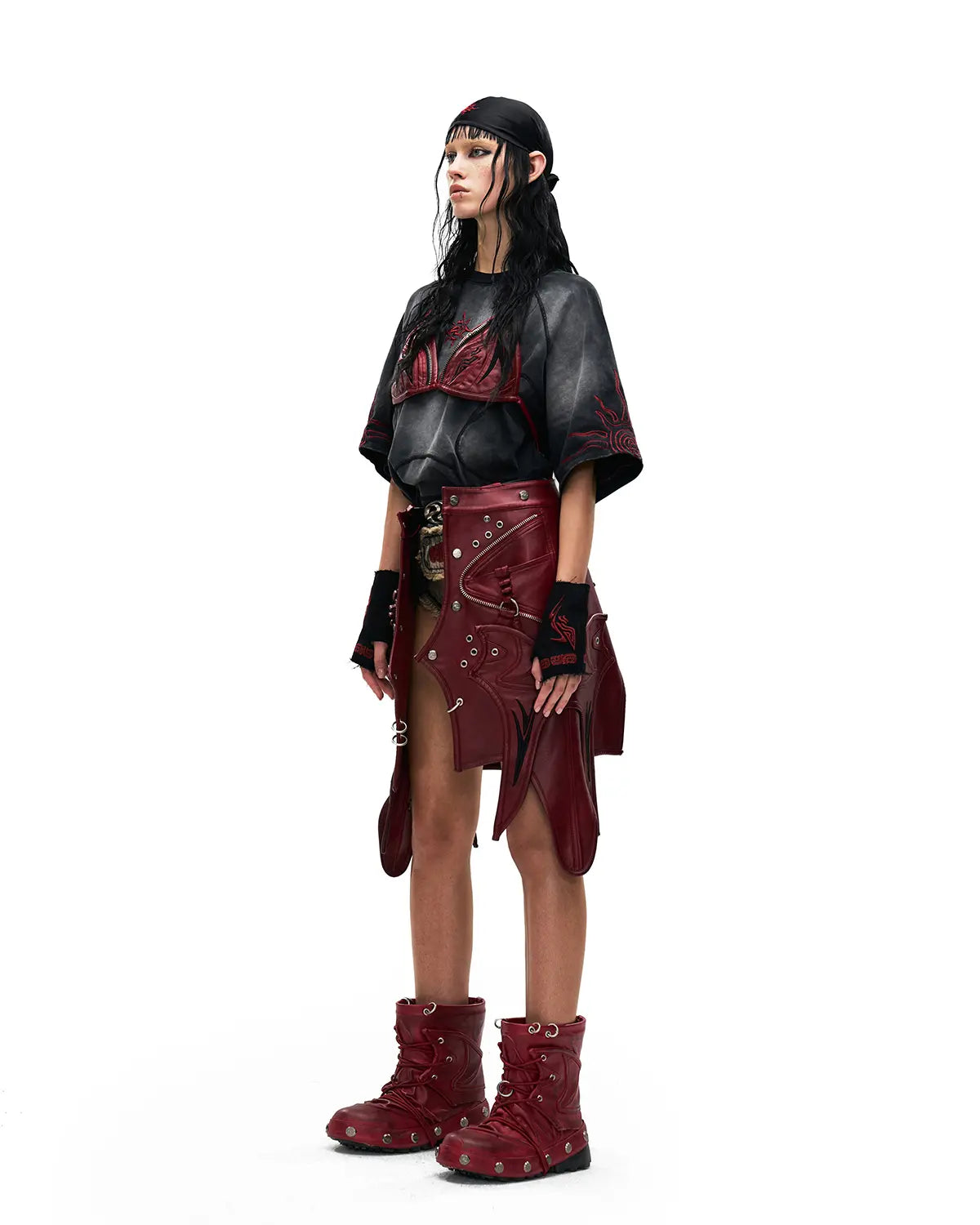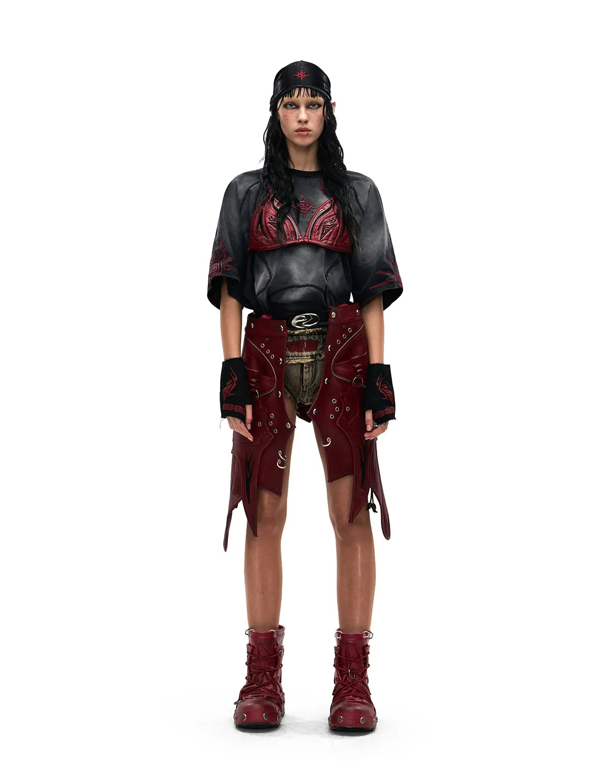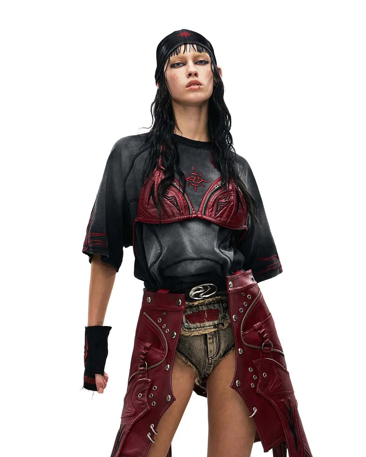 Personsoul Embroidered Mythical Beast Motif Bikini Top In Red