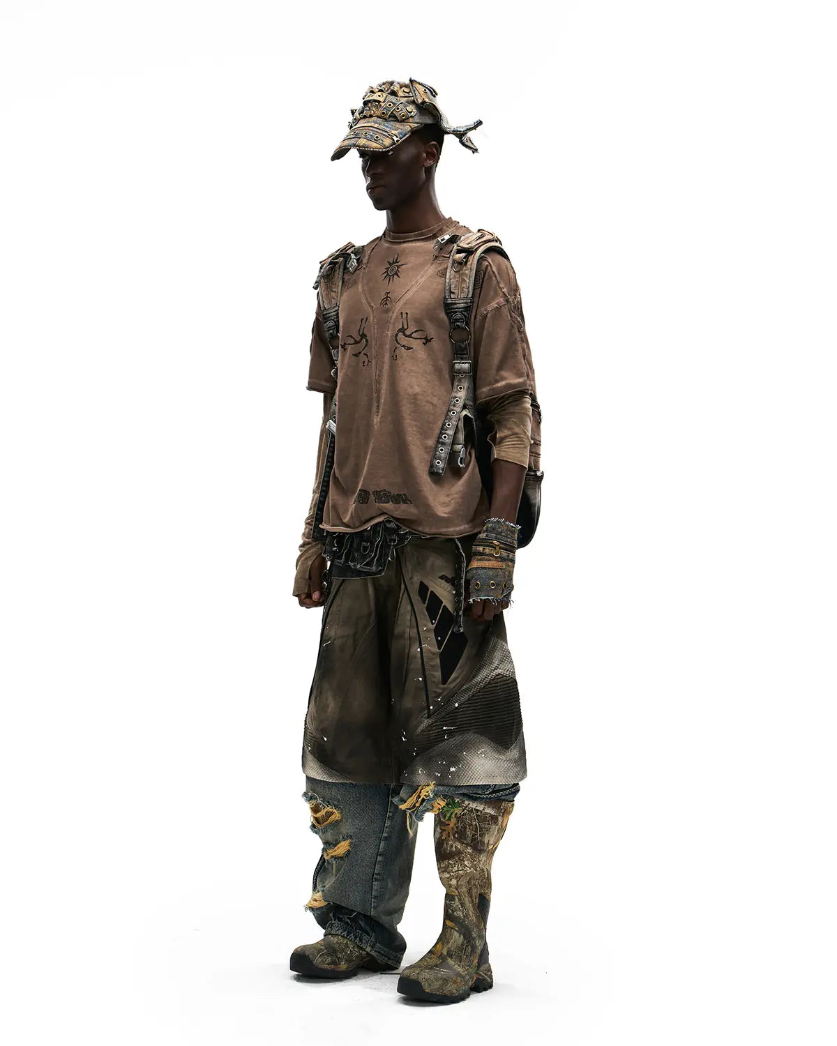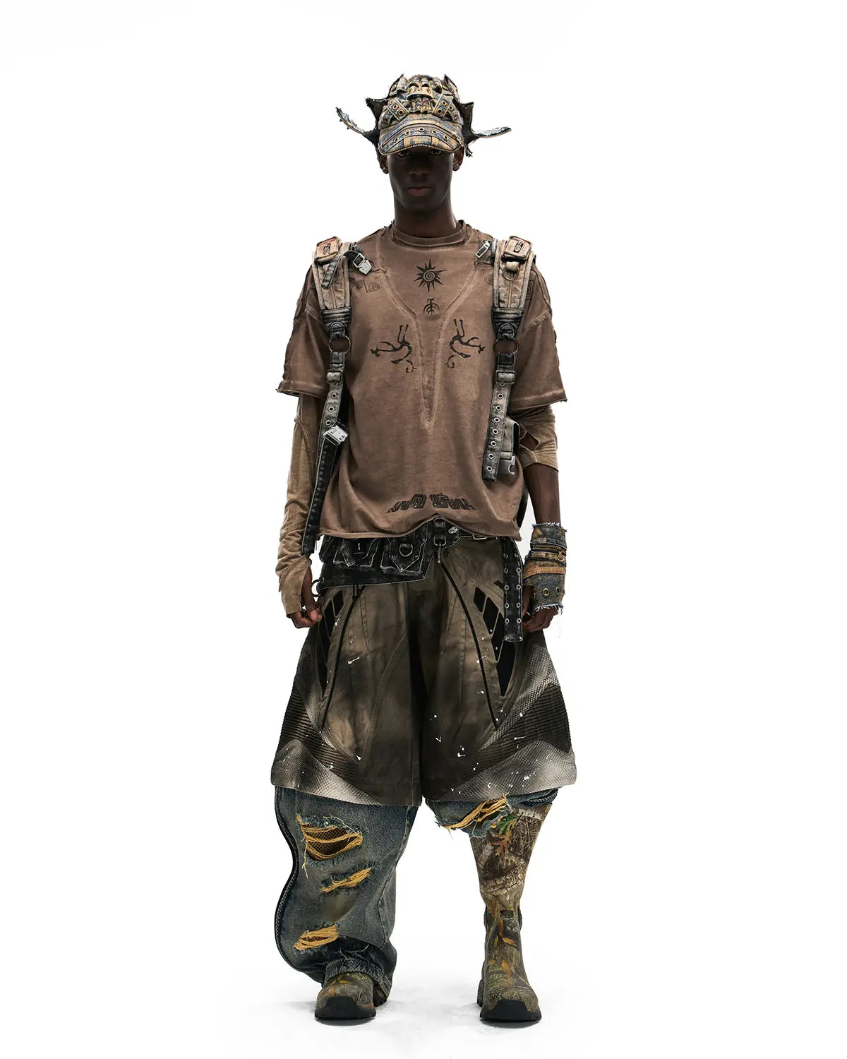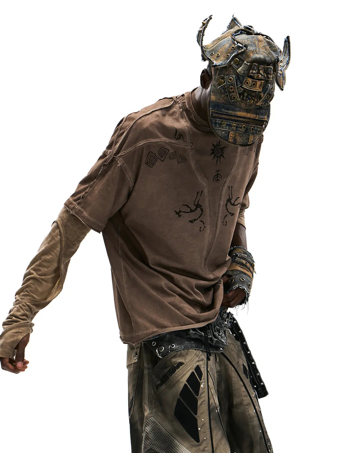 Personsoul Ancient Totem Earth-Tone Patchwork T-Shirt