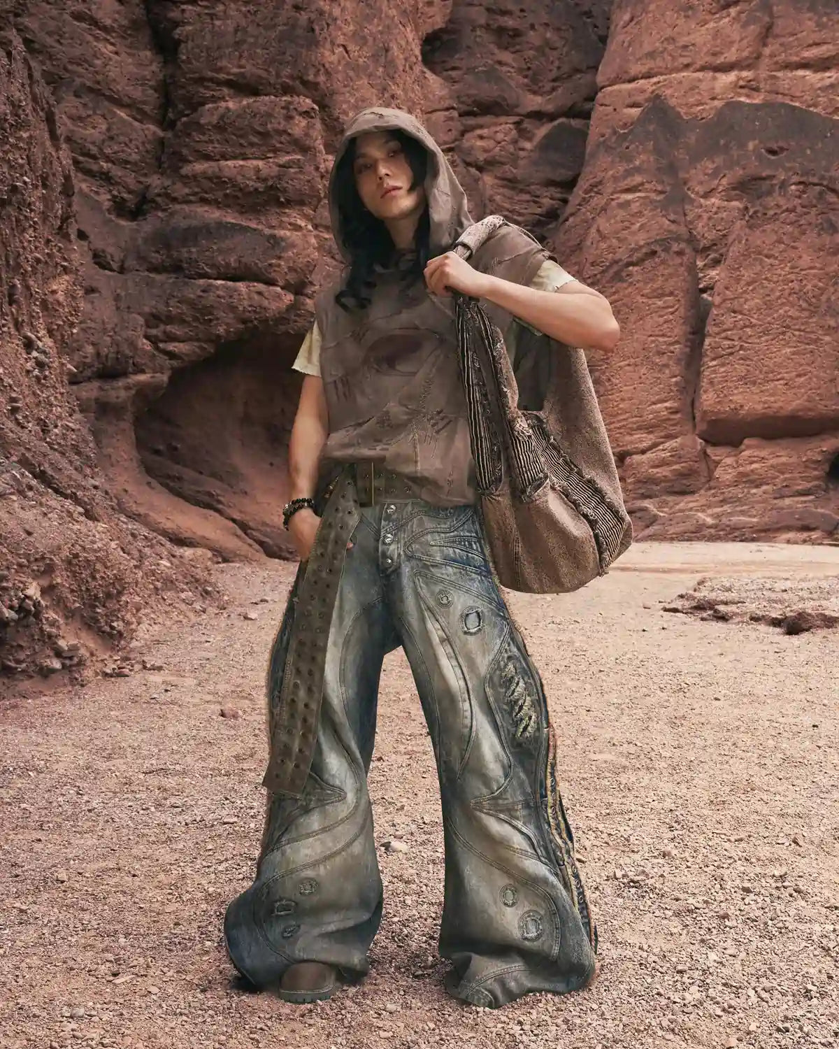 Personsoul Bagua Print Hooded Vest Brown