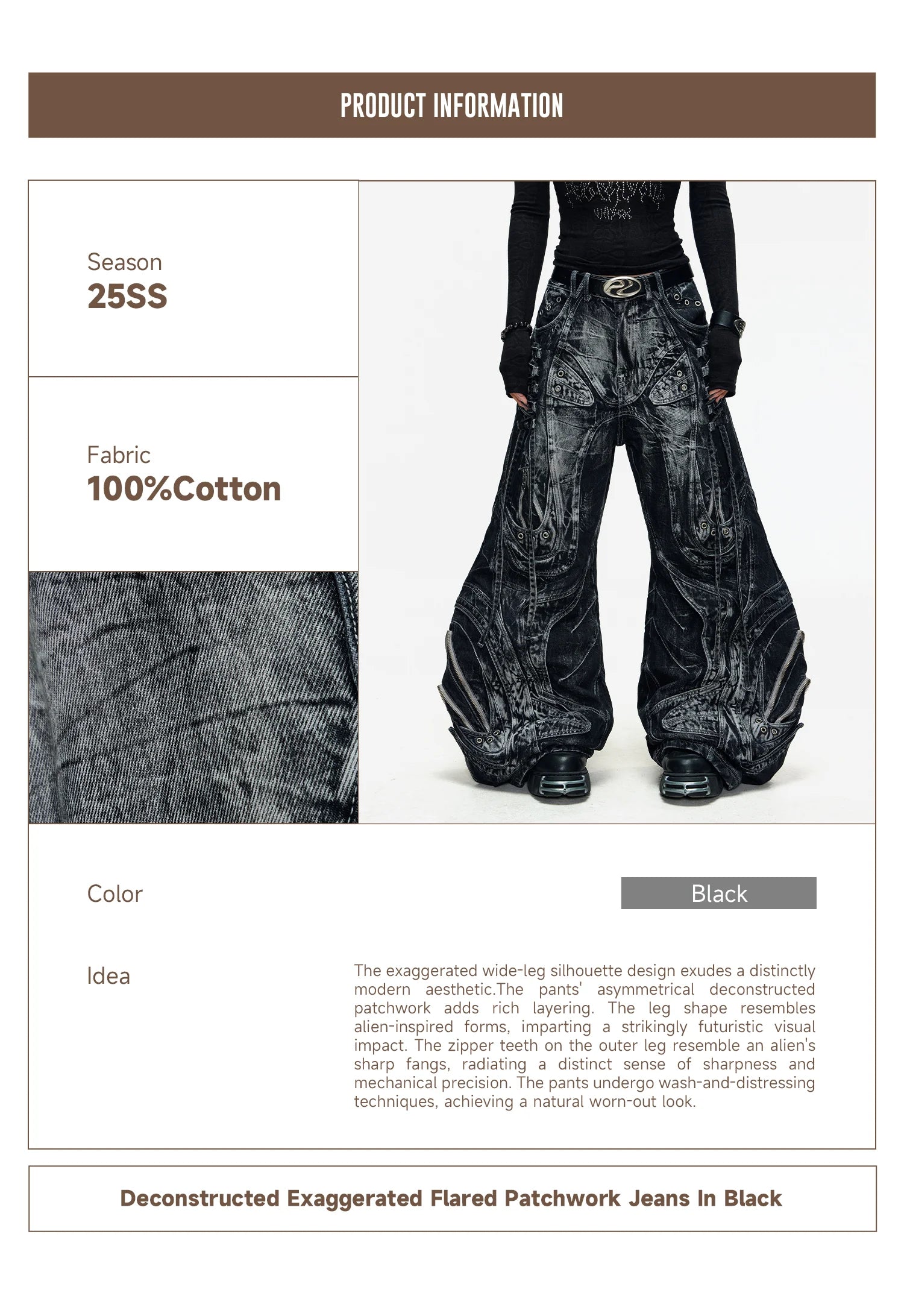 Deconstructed Exaggerated Flared Patchwork Jeans In Black