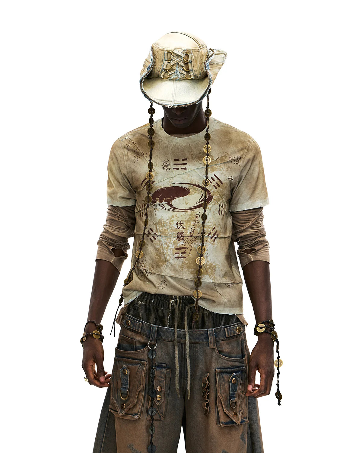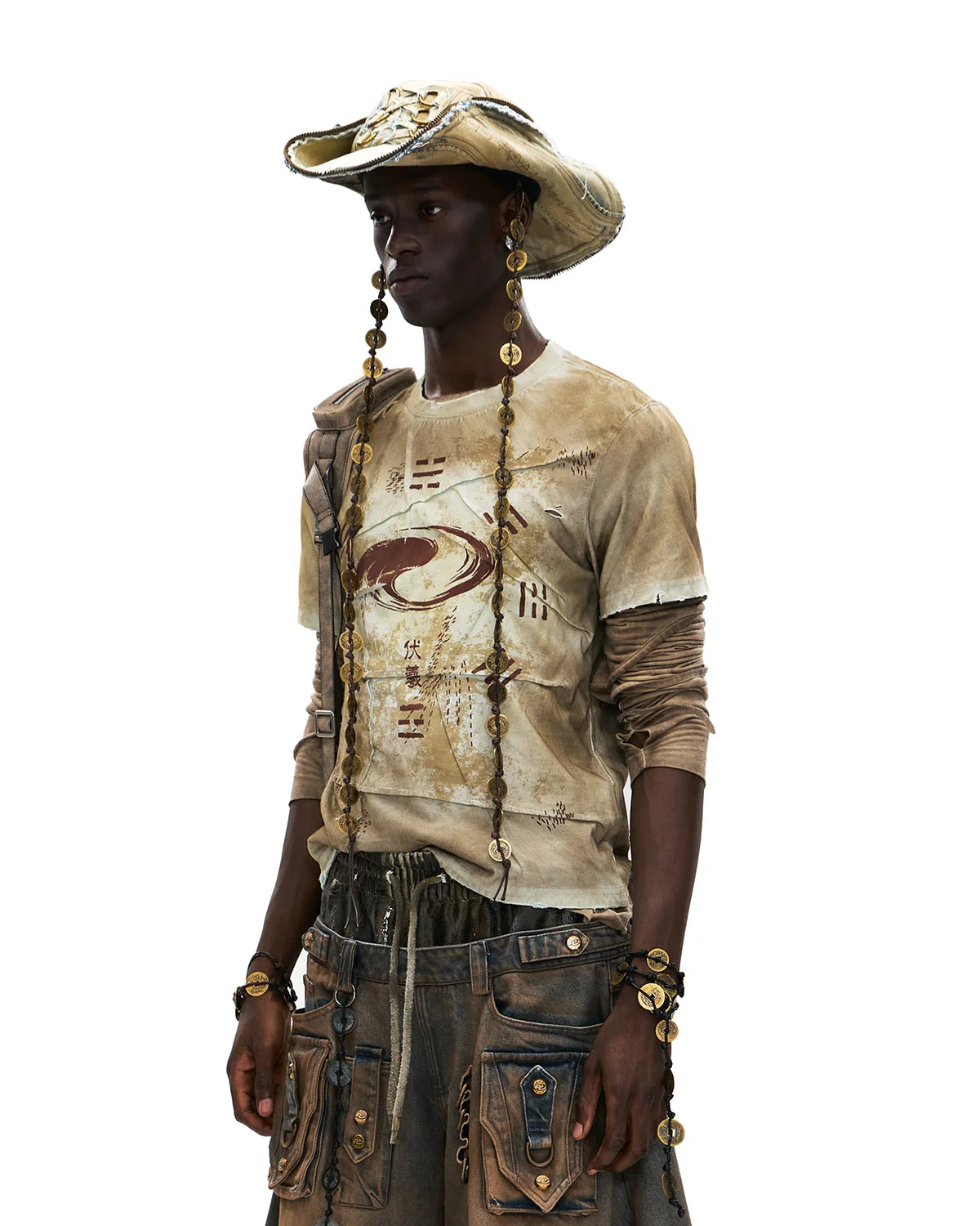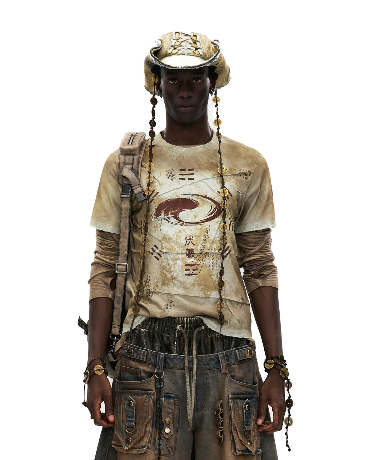 Personsoul Bagua Fuxi Printed T-Shirt Brown