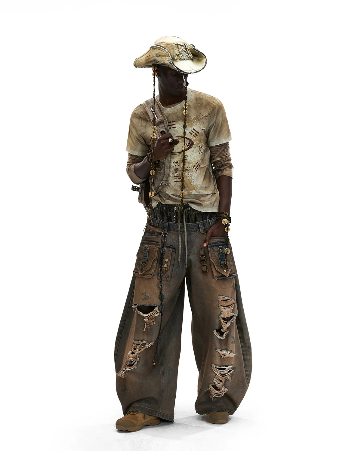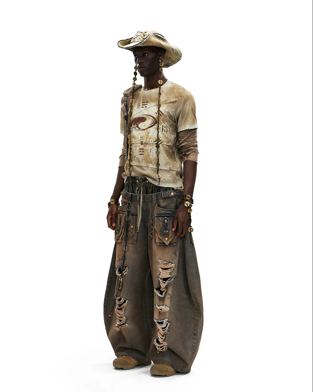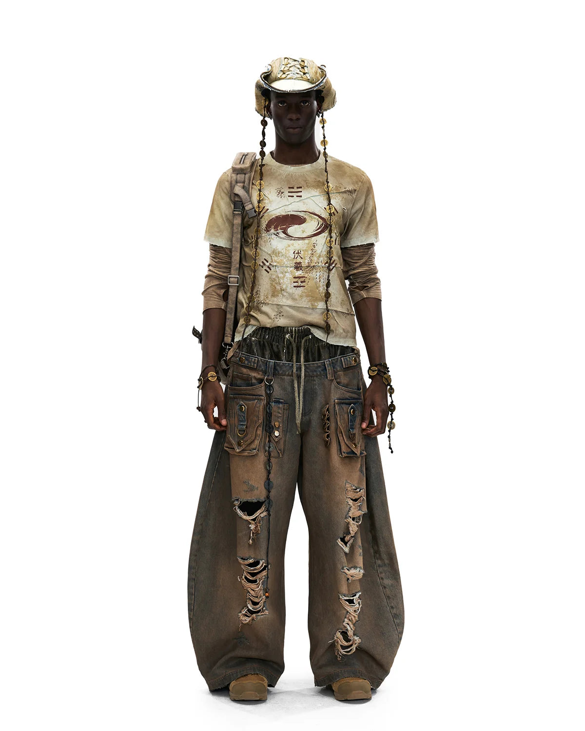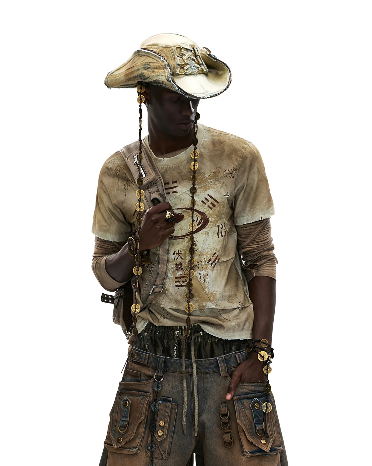 Personsoul Bagua Fuxi Printed T-Shirt Brown