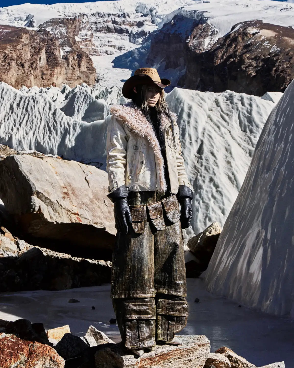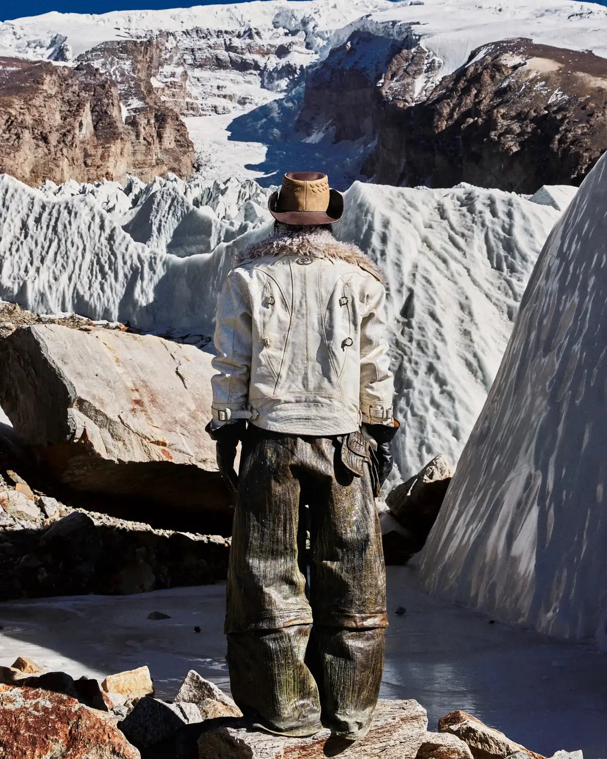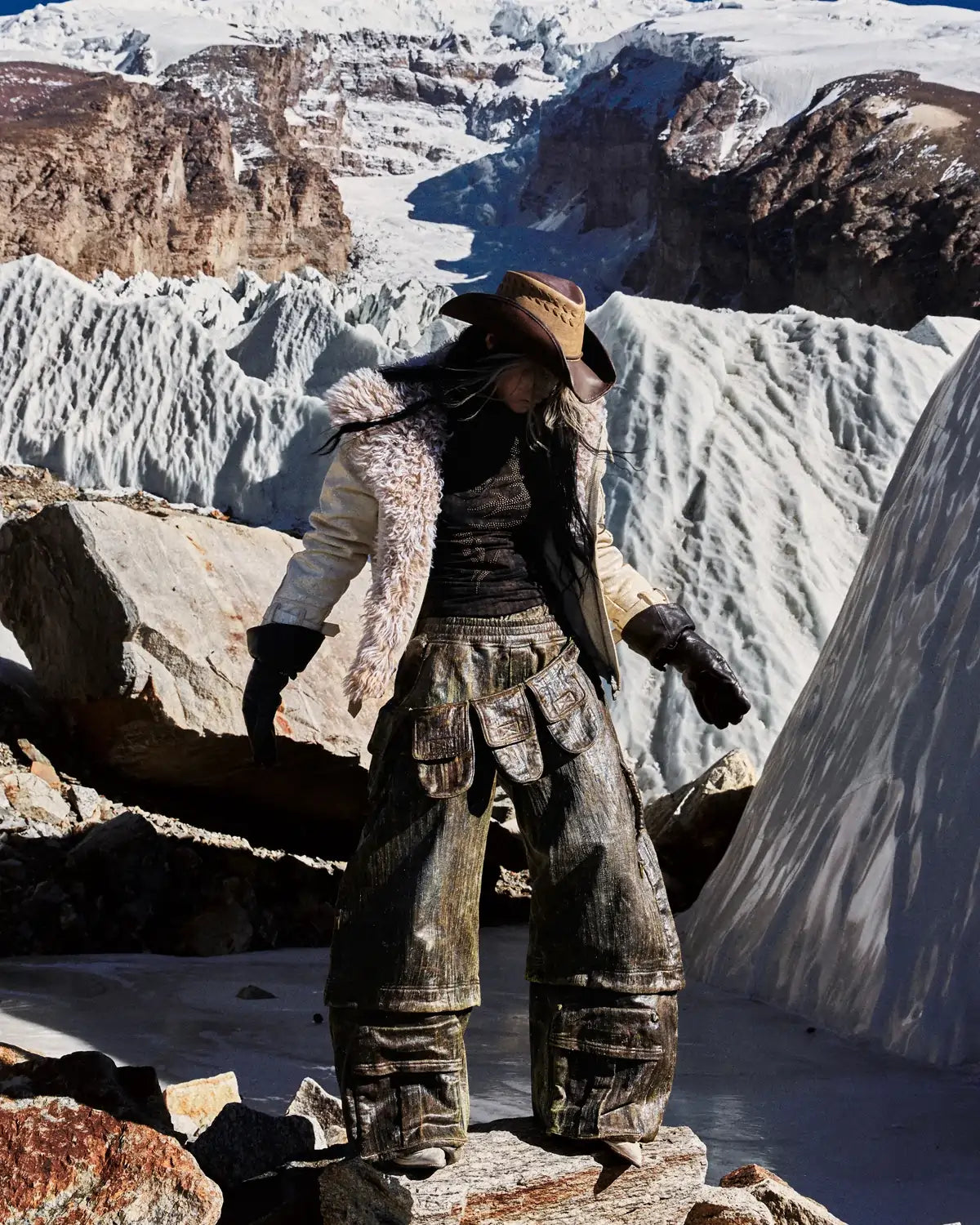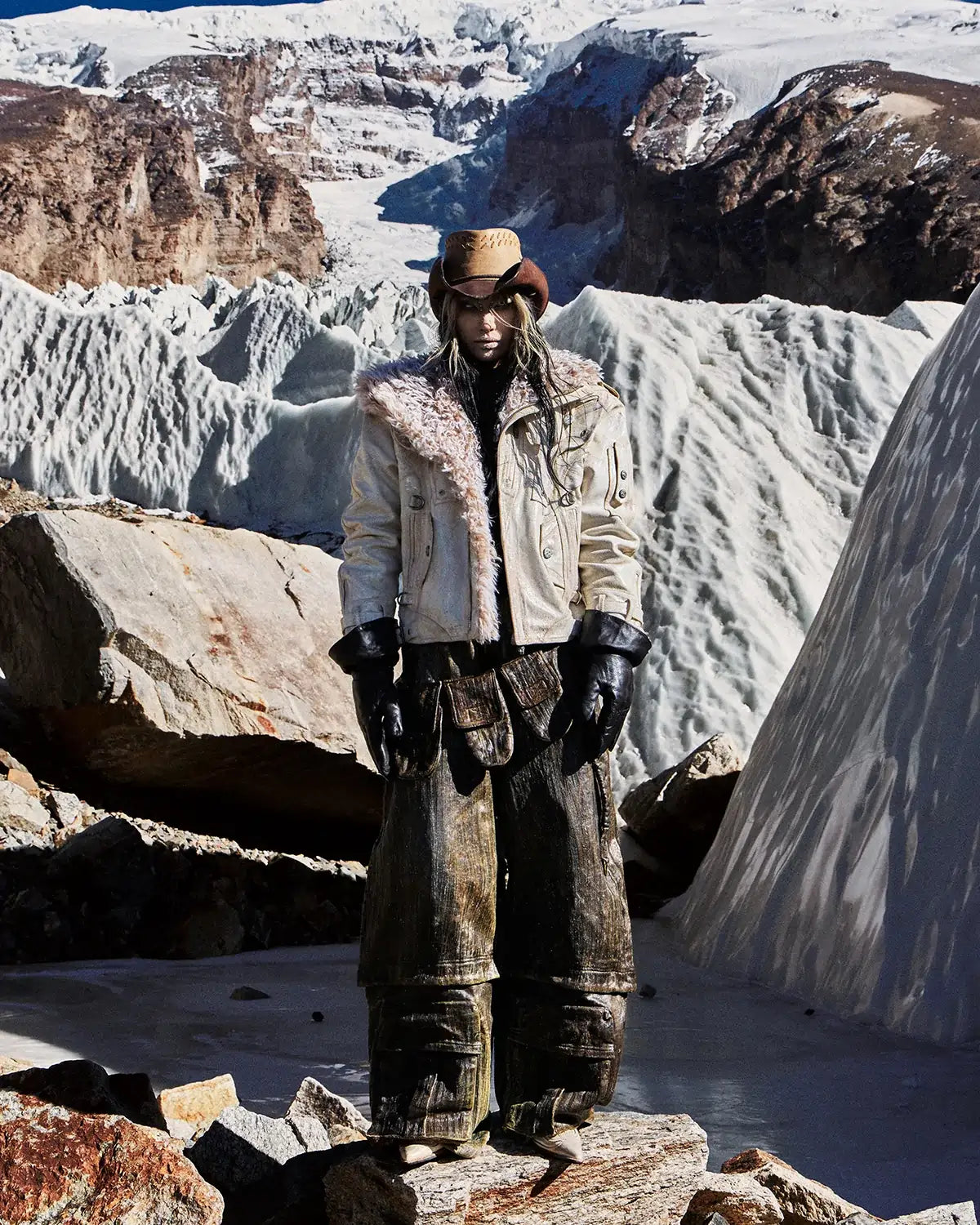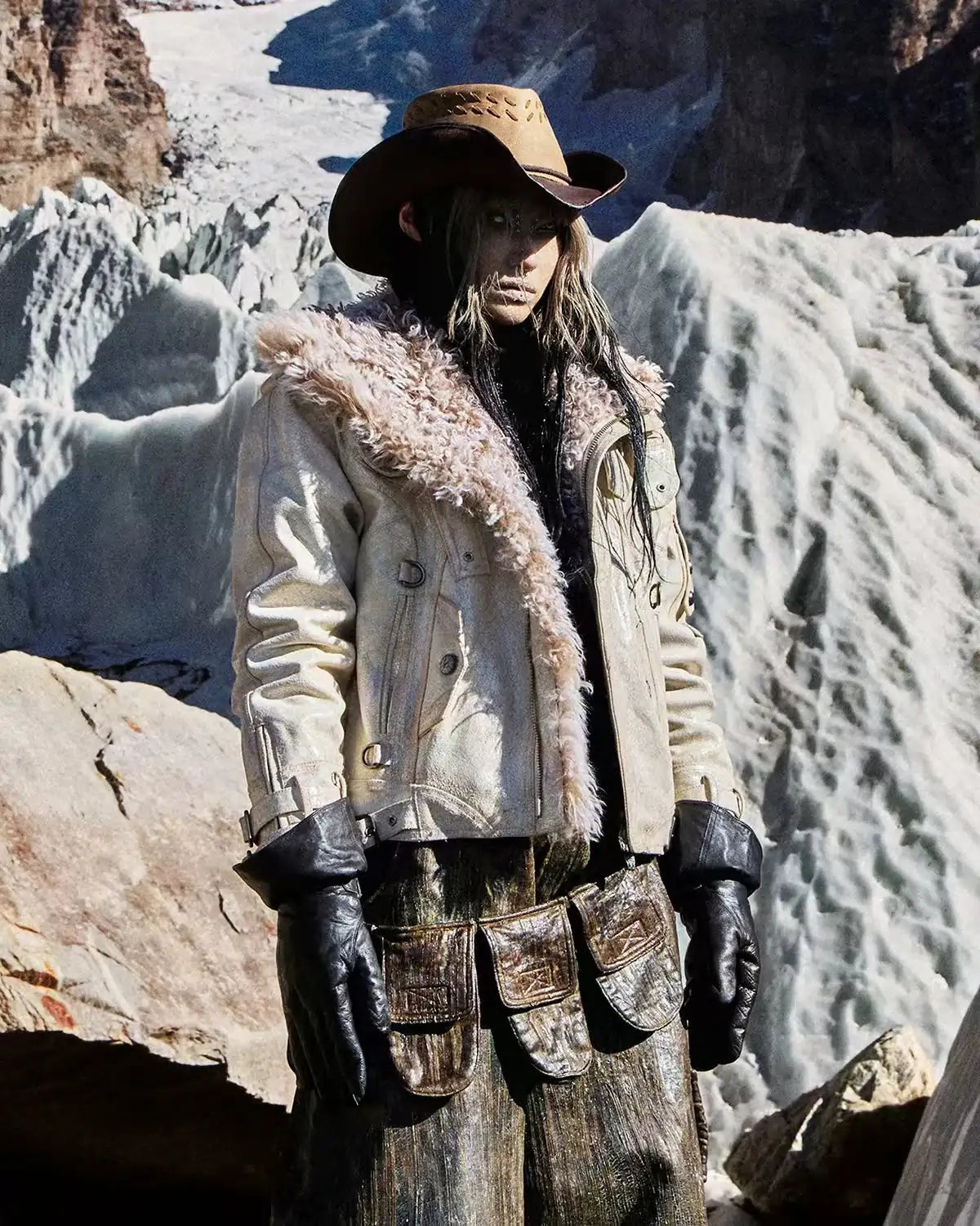 Personsoul Cracked Sheepskin and Mosner Wool Stand Collar Jacket(Limited 100 pieces)