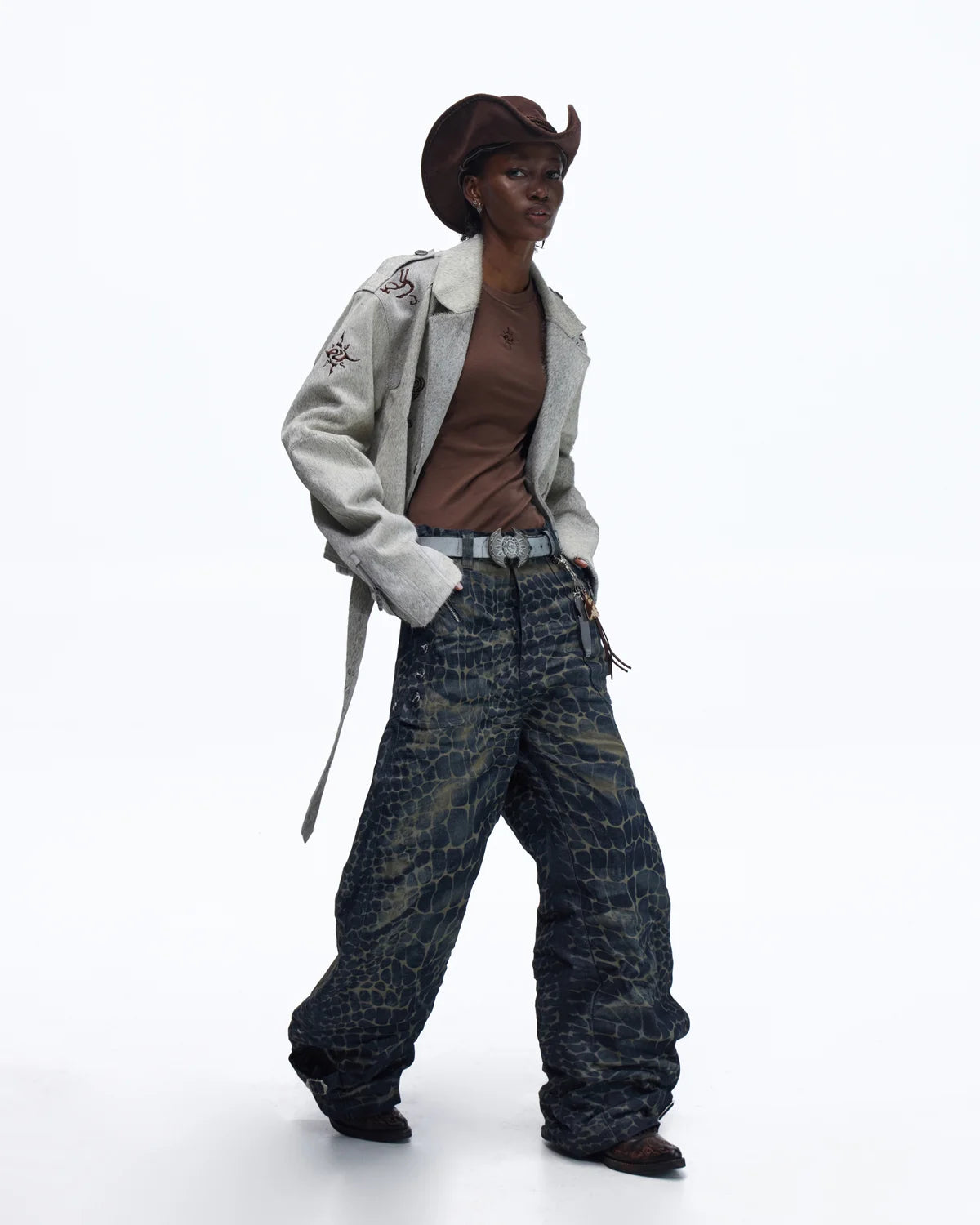 Personsoul Horse-Embroidered Leather Notch Collar Blazer(Limited 100 pieces)