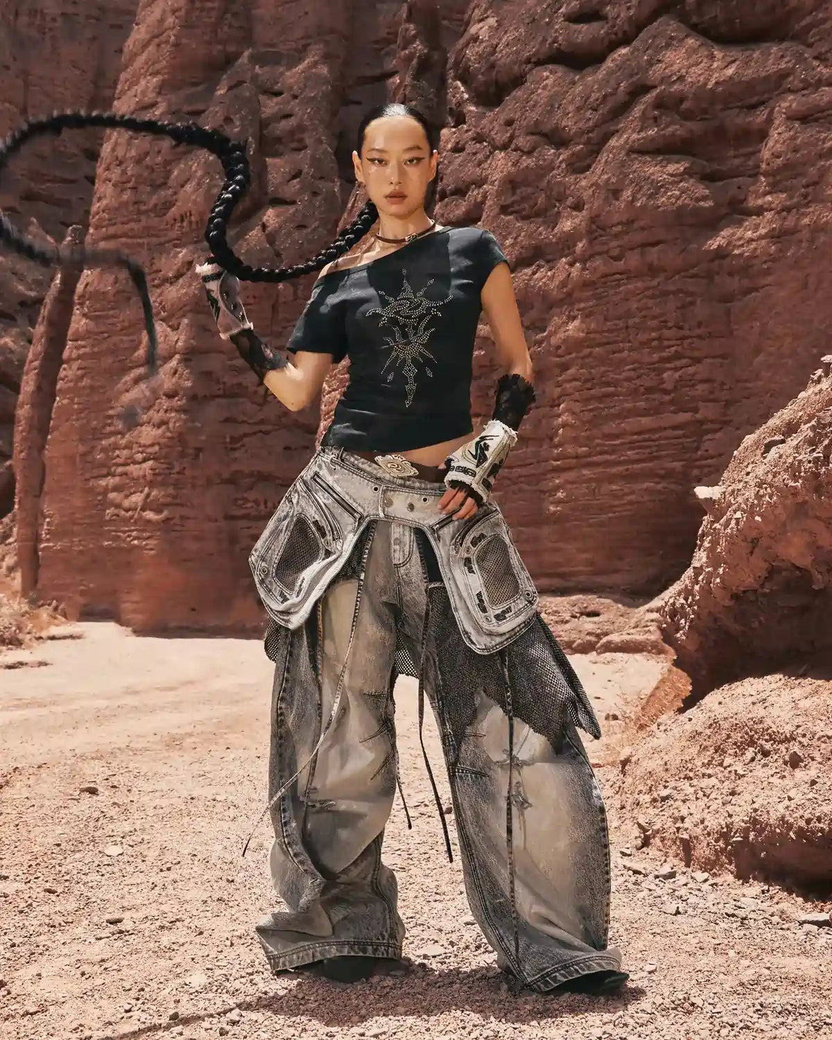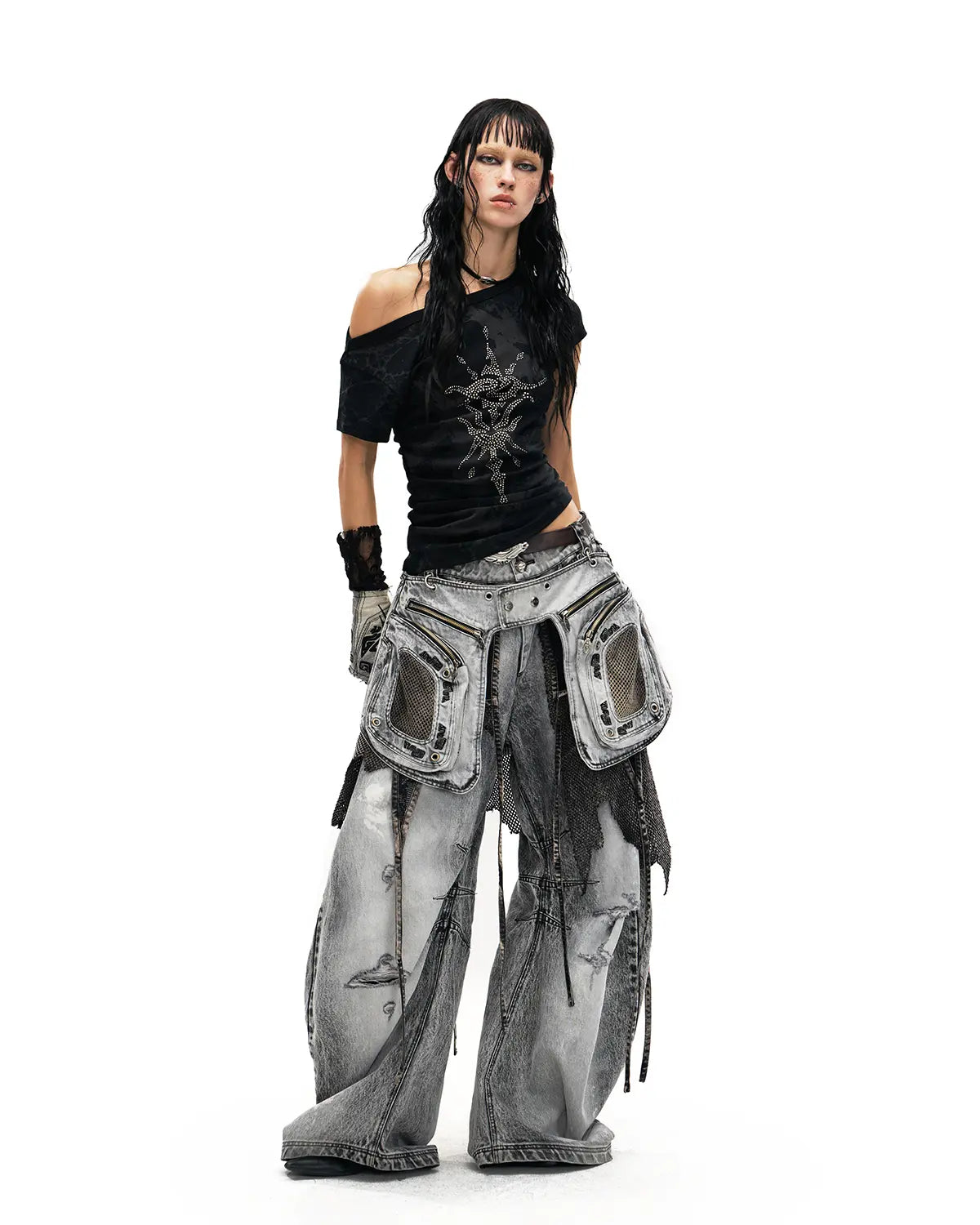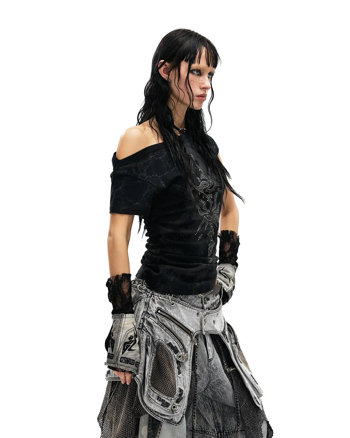 Personsoul Phoenix Motif One-Shoulder T-Shirt In Black