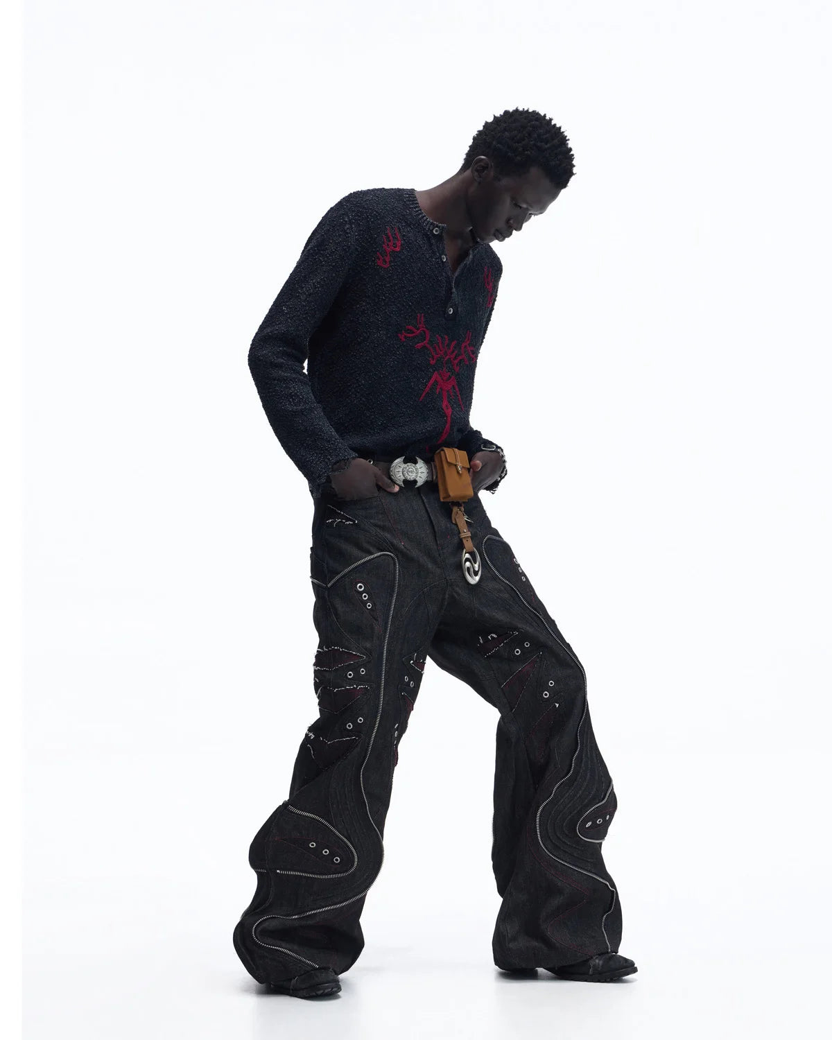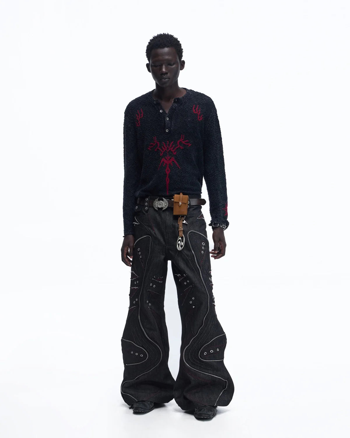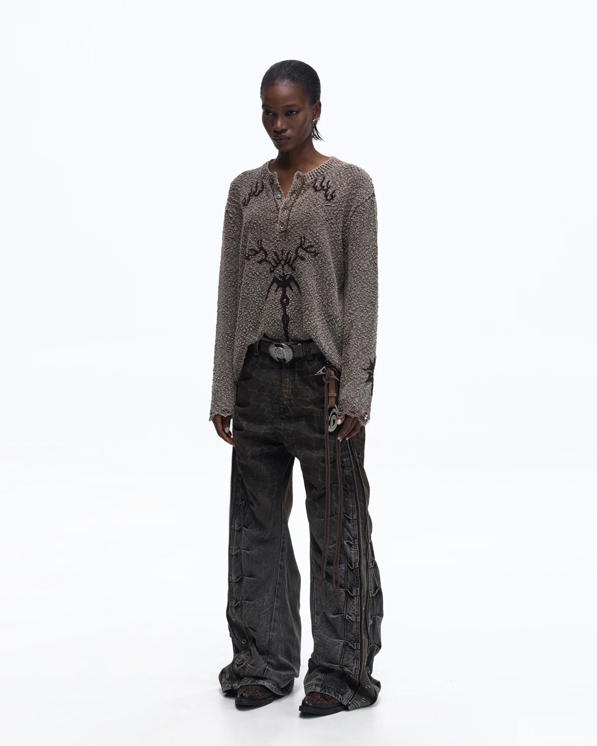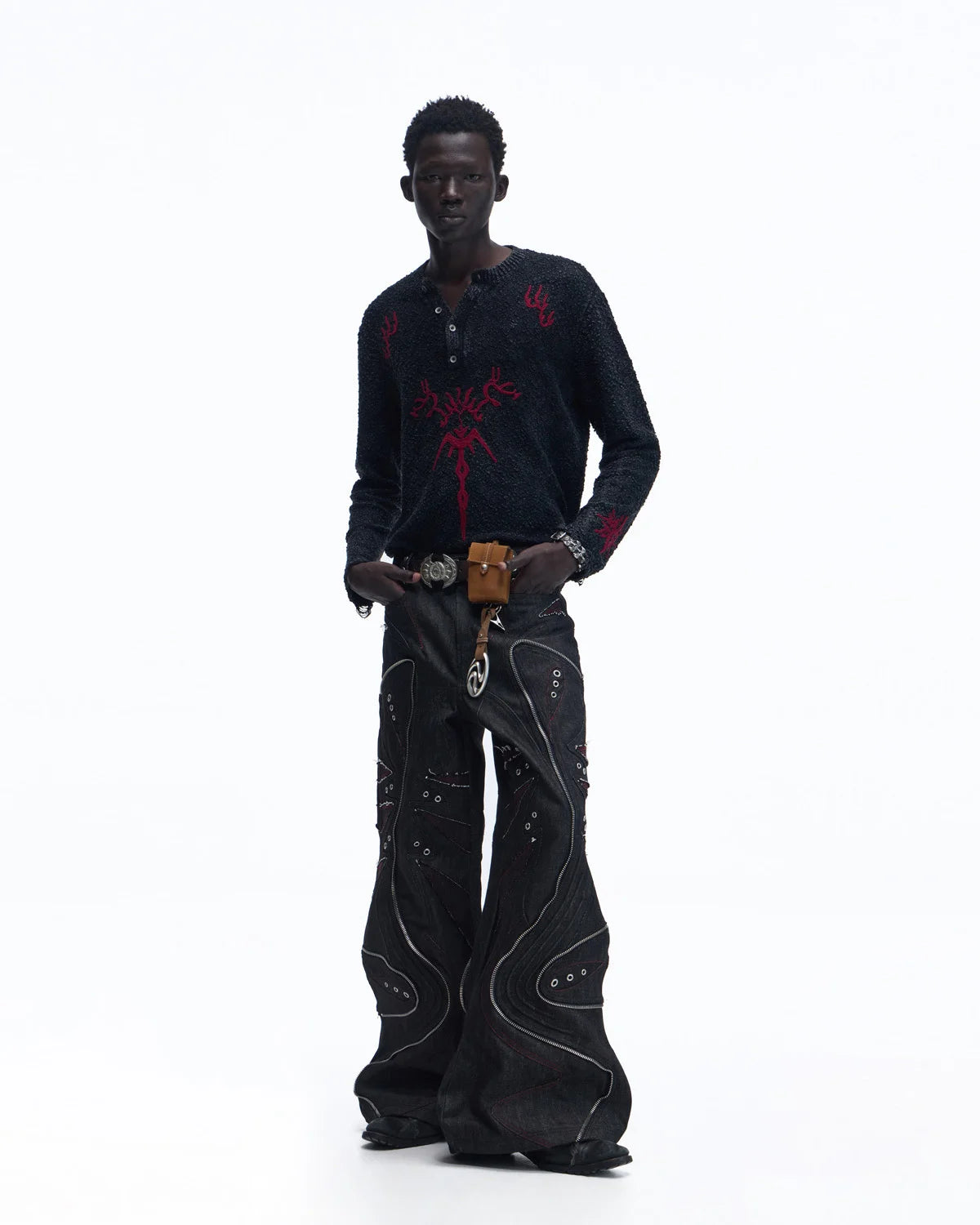 Personsoul Pom-Pom Long-Sleeve Henley Shirt