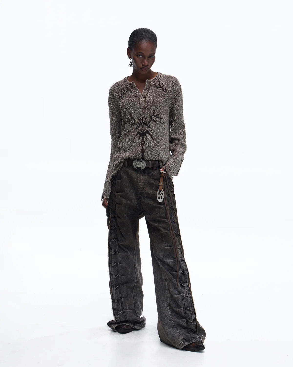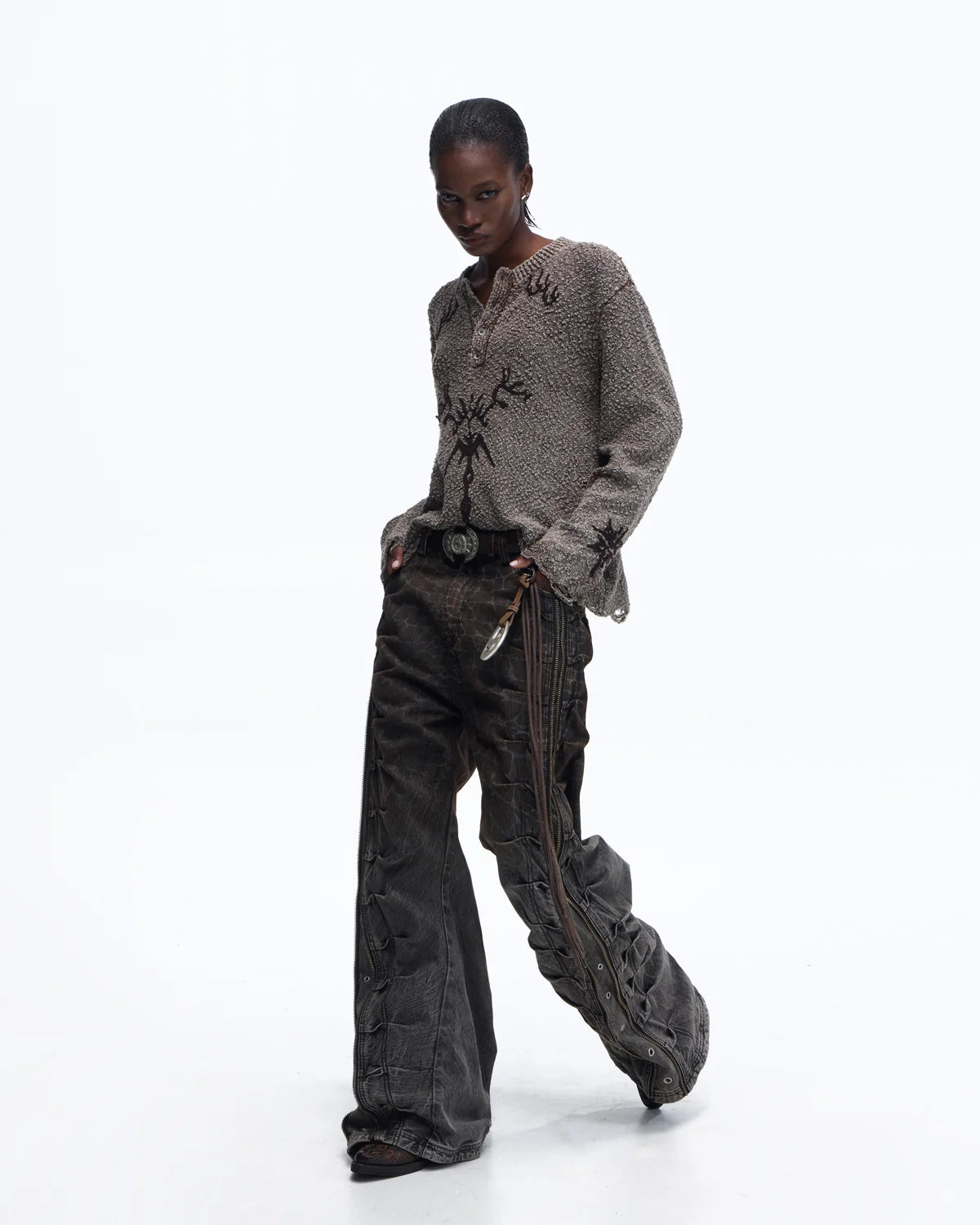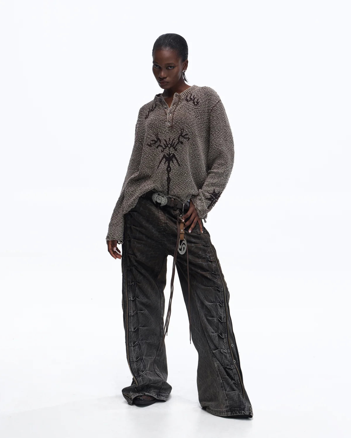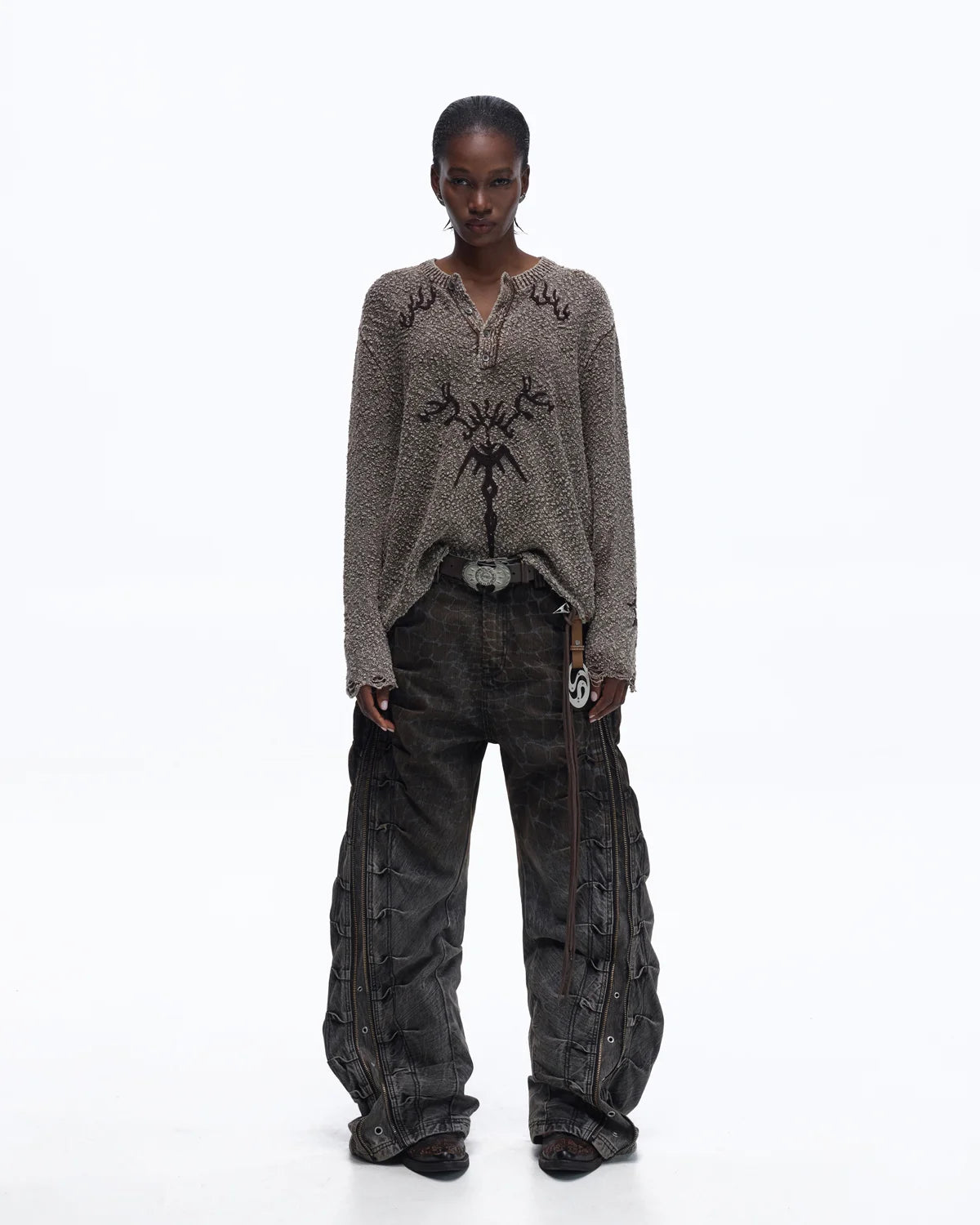 Personsoul Pom-Pom Long-Sleeve Henley Shirt