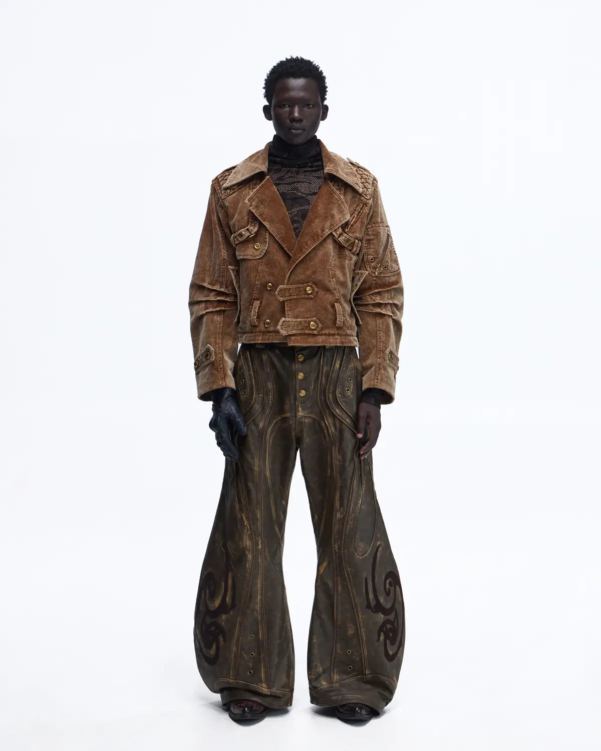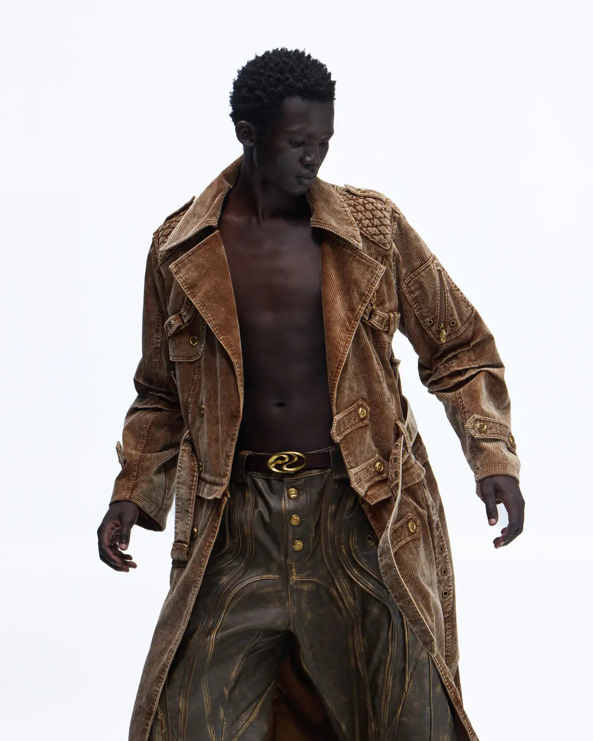 Personsoul Vintage Corduroy Trench Coat with Adjustable Length