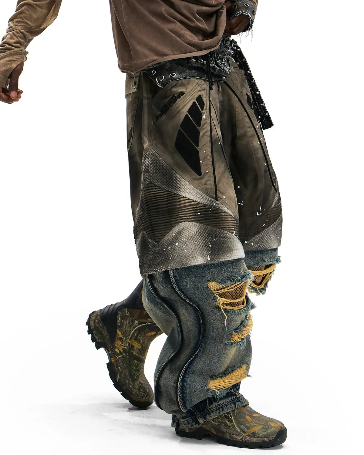 Personsoul Wavy Detachable Racing Denim Jeans